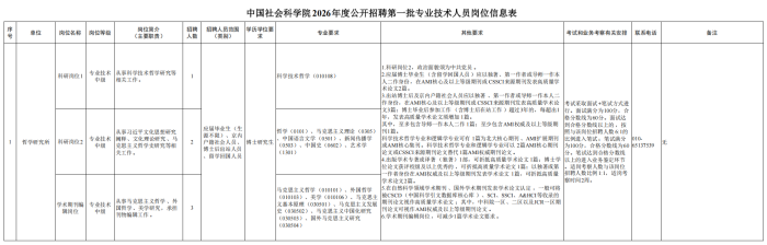 <详情>根据工作需要,按照《事业单位人事管理条例》和事业单位公开招聘有关政策规定,中国社会科学院所属事业单位2026年度公开招聘第一批专业技术人员169名。现将有关事项公告如下: