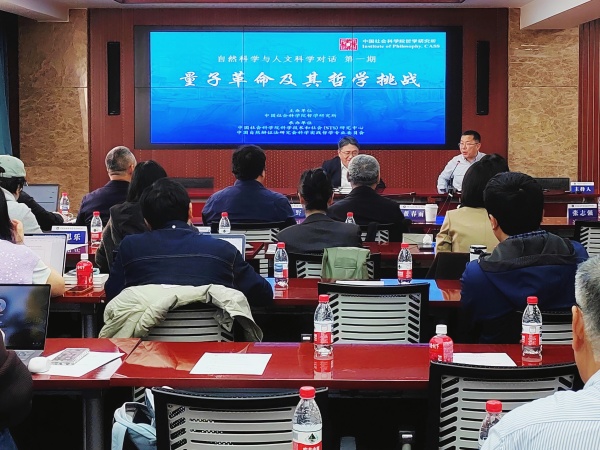 <详情>3月25日,由哲学研究所主办的首期“自然科学与人文科学对话”顺利举办,本次对话主题为“量子革命及其哲学挑战”。自然科学与人文科学对话平台旨在推动科学与人文跨学科交叉融合,凝聚不同学科力量,共同探讨新一轮科技革命中的重大问题和时代问题。哲学研究所所长张志强研究员、副所长刘志明研究员参加活动开幕式。