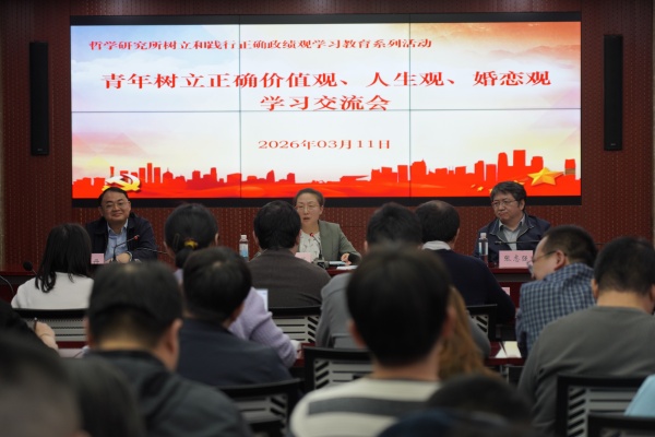 为深入贯彻落实关于开展树立和践行正确政绩观学习教育的工作要求,中国社会科学院哲学研究所于2026年3月11日组织开展树立和践行正确政绩观学习教育系列活动:青年树立正确价值观、人生观、婚恋观学习交流会。哲学研究所党委书记张蕾,所长、党委副书记张志强出席会议,全所45岁及以下青年同志参加此次会议。副所长周丹主持会议。