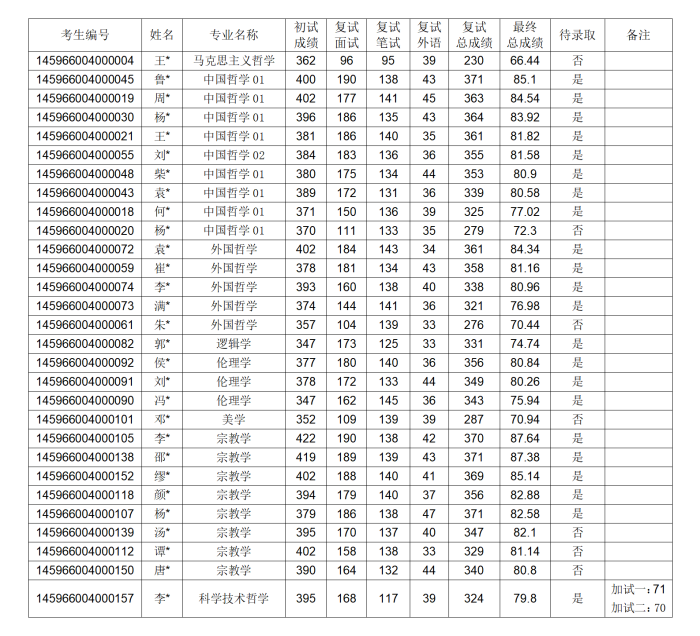 2026年哲学院硕士研究生招生复试结果公示